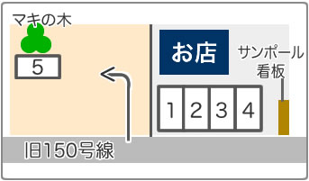 旧150号線の道路沿いで東に向かって走ると一目で分かります。
